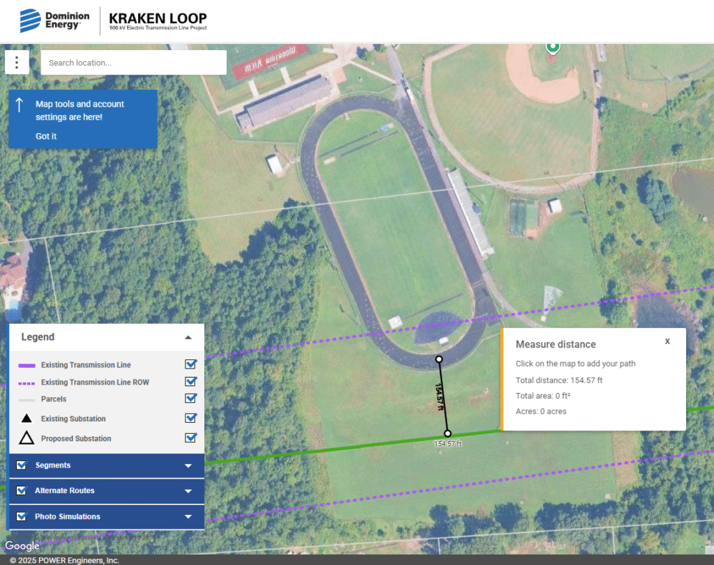 See how the power line is offset in the right of way? When Dominion chooses to add in a second power line, it will be even closer to students as they run.